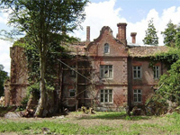 Built in 1870 for the Spurrell family, who had farming connections in Suffolk going back over 500 years, the house originally had 52-acres but this has now been reduced to a more manageable five. The house remained in the Spurrell family until the last member died in 1952. It was then bought by Robert Gamble who eventually found maintenance a significant challenge which was compounded by a poor quality roof repair which failed leading to massive water damage to part of the house, including the collapse of sections of the second floor. The near derelict state of the interior is mirrored in the exterior which is partially supported by scaffolding or probably held together by the extensive ivy. Perhaps questions should be asked as to why this gradual decay was not spotted by the local conservation department who may have been able to force repairs before the damage became so extensive?